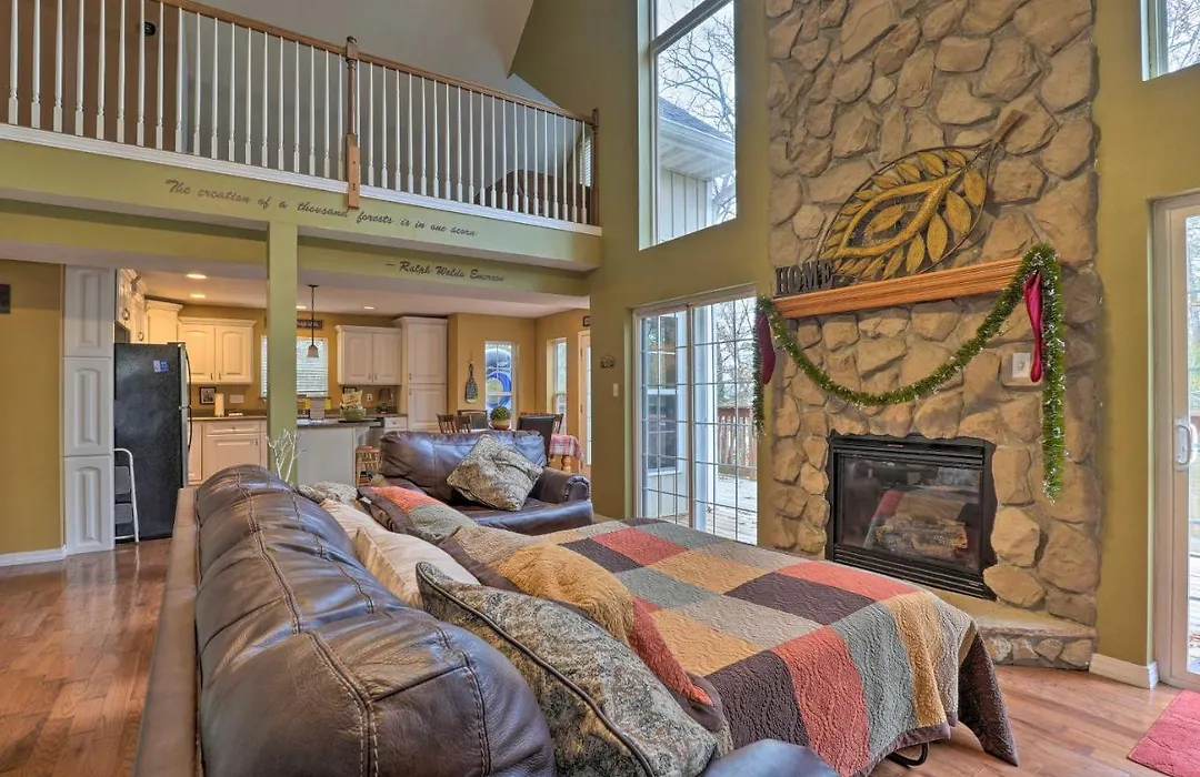 Außerdem verfügt die Hot Tub And Wooded Views Lakefront Blue Eye Cottage über eine voll ausgestattete Küchenzeile mit einem Kühlschrank, einem Herd und Küchenutensilien. Die 2-Zimmer- Hot Tub And Wooded Views Lakefront Blue Eye Cottage ist mit dem Auto in 34 Minuten vom Flughafen Branson aus zu erreichen.